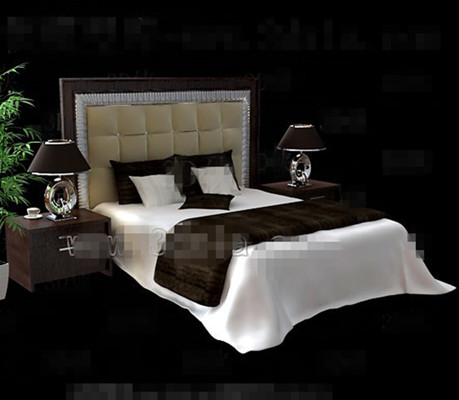 Modern brown wooden double bed