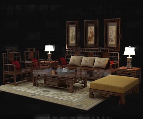 Chinese style retro wooden sofa combination