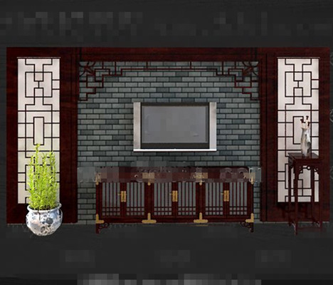 Chinese style retro red wooden TV wall