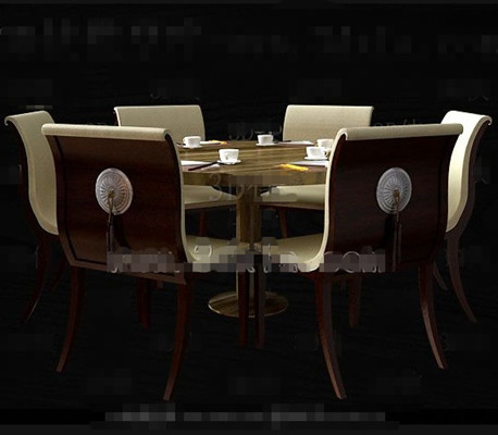 White wooden tables and chairs cabinet combination