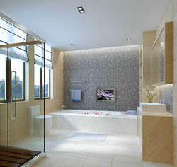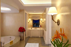 Simple toilet, bathroom, bathtub, warm decoration, interior