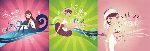 Description:3 lovable characters fashion illustrator vector material
