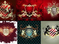 6 European Shield patterns wings vector material