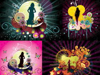 Trend pattern and female silhouettes vector material
