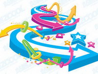 A colorful three-dimensional circular theme of the arrow vec