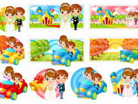 Cute cartoon image of the bride and groom vector elements