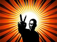 People in the victory sign and the background radiation vect