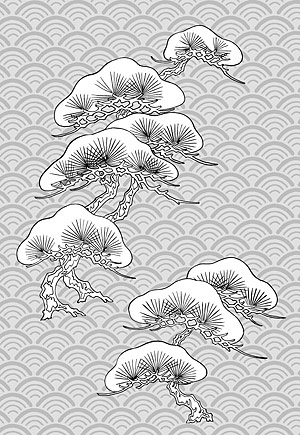 Description:Japanese line drawing of plant flowers vector material -32 (pine, the classical wave background)