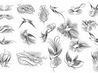 Birds, birds, flowers, black and white, and material