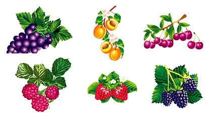 KeyWords:Vector, fruit, cherry, peach,