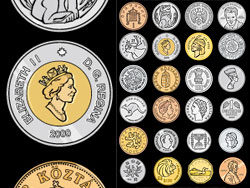 Variety of foreign coins Vector