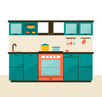 Blue-green hue kitchen design vector